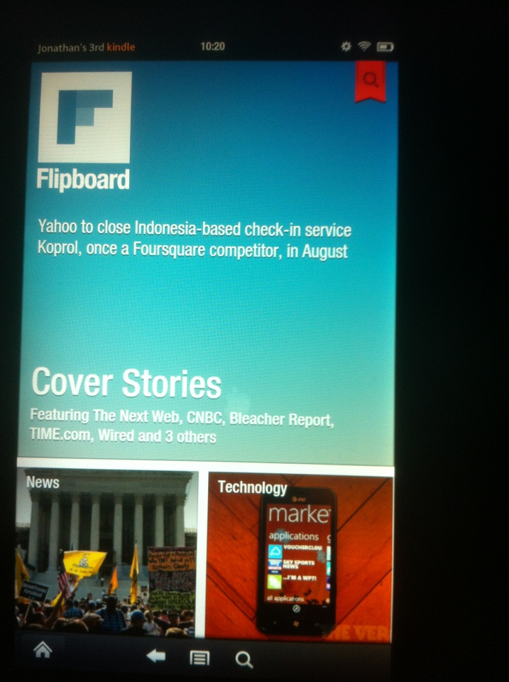 I thought I’d share a few Kindle Fire apps that I’ve enjoyed lately. Flipboard has been around for awhile but just recently made its way to the Kindle Fire and I absolutely love it. The app presents news stories in a beautiful and convenient format in which you flip through categories and stories that are presented visually. You can also view your Facebook and Twitter timelines in the same format which is kind of neat.
