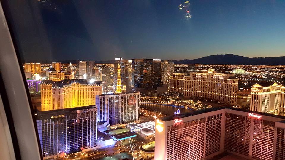We met up with some of Vanessa’s friends for dinner at Hash House a go go which was delicious, and after the meal I was asked if I wanted a to go cup for my margarita. Only in Vegas! I ended up pouring it into my empty 50 oz souvenir cup and we headed to the High Roller observation wheel. The wheel was wonderful, and we spent an awesome thirty minutes taking in the view of the city after sunset. I highly recommend riding the wheel. We arrived shortly after 8PM and there wasn’t much of a line at all, but as we disembarked half an hour later the line was incredibly long. I definitely recommend heading there just as the sun sets, it’s wonderful.
