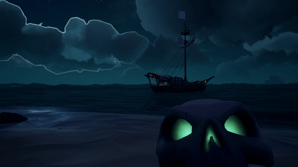 Visually, Sea of Thieves is a beautiful game. The first time I looked up at the night sky I was in awe! The water looks amazing in its many forms (from calm, peaceful light blue to menacing dark waves that thrash the ship about) and sunrises and sunsets are impressive. I’ve on occasion just gotten lost admiring the world of the game as I’ve sailed about aimlessly. The game runs smoothly on both my Xbox One X and my PC (GTX 1060, AMD FX 8320 running at 4.0 GHz). I haven’t had any server issues whatsoever, though it may be because I’ve only played at night (after 11 MT). Because of the server issues no achievements have popped for me since launch day (they’ve been temporarily disabled), but other than that I haven’t run into any technical issues with the game.