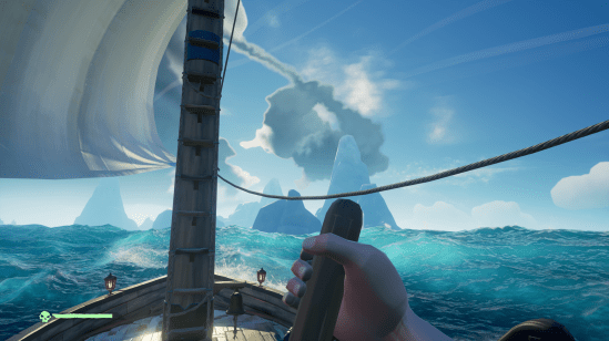 A few nights ago my brother and I set sail to hunt down a couple treasure chests. It was the first time I had set sail in Sea of Thieves with another player, and it was my brother’s first time playing at all. We tracked down a few treasure chests, sailed them back to an outpost and for the first time in our time with the game we spotted another ship. It was sitting idle outside the outpost as we tried to slowly cruise toward the shore to unload our bounty. As we unloaded the treasure, I felt my pulse pick up as I wasn’t sure if the players on the ship would be friendly or try to spoil our efforts. At first it didn’t seem like anyone was around, however as I emerged out of the water and onto the beach I saw a figure jump off the mystery ship and start swimming toward our own. I quickly ordered my brother to head back to the ship to protect our other chest as I sprinted to the vendor to turn in the one I was hauling. Just as I returned to the water I saw the figure atop our ship burst into a puff of smoke as my brother dispatched him before he could steal the other chest.